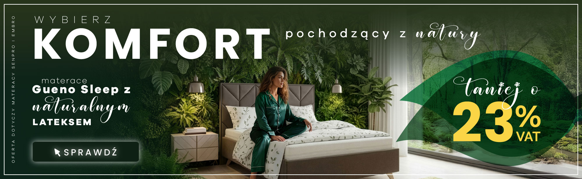 - Pianka GUENO Thermo – ta innowacyjna pianka reaguje na ciepło ciała, co pozwala na dokładne dopasowanie do jego kształtu. Dzięki temu użytkownik zyskuje optymalne wsparcie kręgosłupa, niezależnie od przyjmowanej pozycji w czasie snu. Pianka GUENO Thermo doskonale minimalizuje przenoszenie drgań, co zapewnia komfortowy sen, nawet dla dwóch osób.