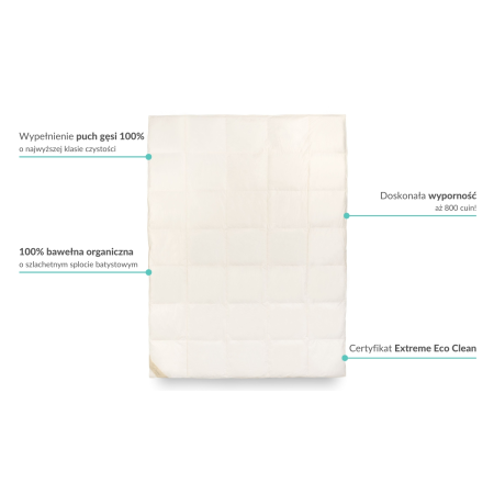 • kołdra puchowa AMZ Organic Cotton jest wypełniona w 100% polskim puchem gęsim,