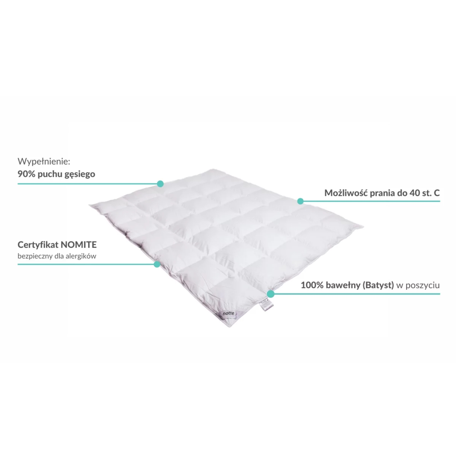 Nawet podczas wyjątkowo mroźnej zimy jest bardzo ciepła. Z kolei latem jest bardzo komfortowa i przewiewna. Kołdra utrzymuje także stały poziom wilgotności, więc nie można się pod nią ani przegrzać, ani zmarznąć. Jest to najwyższej jakości luksusowy produkt polskiej produkcji.