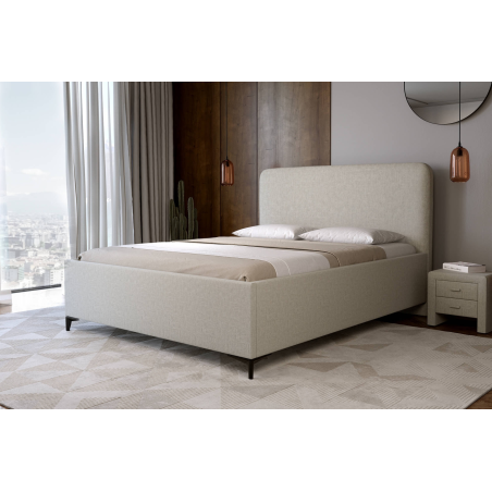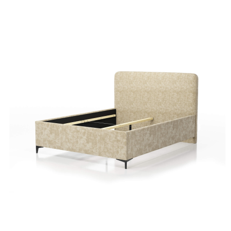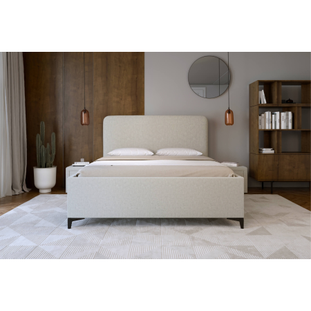 To łóżko ma prostą formę, która łatwo wpisuje się w różne style wnętrz. Zagłówek jest gładki i lekko zaokrąglony, co dodaje mu miękkiego charakteru bez przesady. Łóżko 84003 dobrze wygląda zarówno w bardziej tradycyjnych, jak i współczesnych sypialniach. Możesz wybrać tkaninę i kolor, które najlepiej pasują do Twojego pomysłu na przestrzeń. W środku znajduje się pojemnik na pościel, więc łatwo utrzymać porządek. Stelaż oparty na metalowej ramie daje pewność, że konstrukcja wytrzyma przez lata, a metalowe nogi pozwalają wygodnie odkurzyć podłogę pod łóżkiem. To dobry wybór, jeśli zależy Ci na prostocie, wygodzie i rozsądnym wykorzystaniu miejsca.