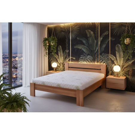 Łóżko Topaz 1 z drewna bukowego ma masywną budowę i prosty, pozbawiony rozpraszających uwagę dekoracji wygląd. Dzięki temu bez trudu wpasuje się w unikalny wystrój twojej sypialni. Drewno bukowe to stosunkowo twardy i odporny na obicia materiał. Z tego powodu, wybór modelu Topaz 1 z drewna bukowego powinny zwłaszcza rozważyć osoby, które lubią często zmieniać wygląd swojej sypialni i nieustannie zmieniają układ mebli. Łóżko Topaz 1 to konstrukcja o prostym, uniwersalnym i nowoczesnym wyglądzie. Cztery solidne grube nogi dobrze komponują się z oszczędnym zanóżkiem i zagłówkiem, w którym wycięto delikatny prześwit.