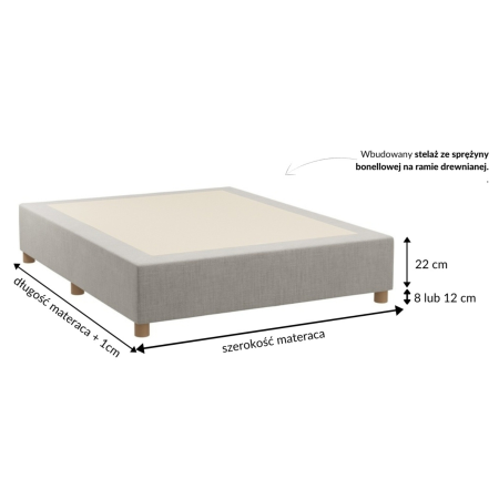 • Cena zawiera: zagłówek Z22 oraz korpus KPO (materac na ramie drewnianej z wkładem ze sprężyn bonelowych o twardości H3 obłożony przekładką tapicerską i pianką poliuretanową)