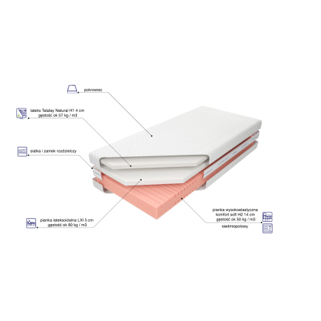 Materac Baby Talalay Natural dostępny jest w twardości H1, co czyni go idealnym rozwiązaniem dla małych dzieci. Przy wyborze twardości materaca warto uwzględnić: