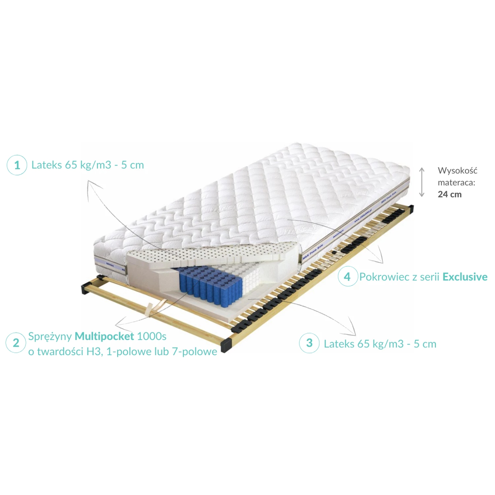 Lateks Talalay Natural, sprężyna Multipocket, lateks, sprężyna Squareflex, pianka wysokoelastyczna