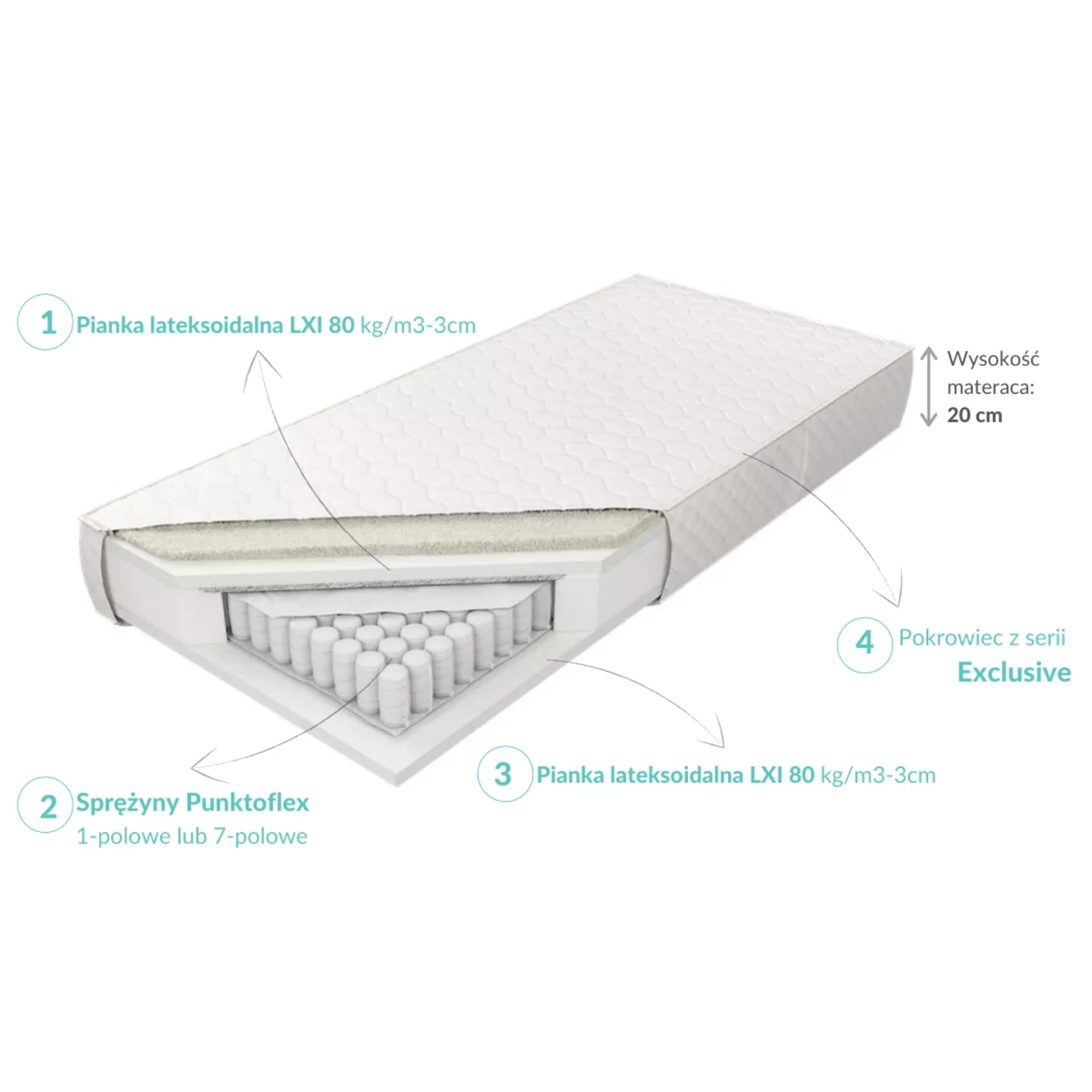 Lateks Talalay Blue, pianka Komfort Soft, pianka Komfort Hard