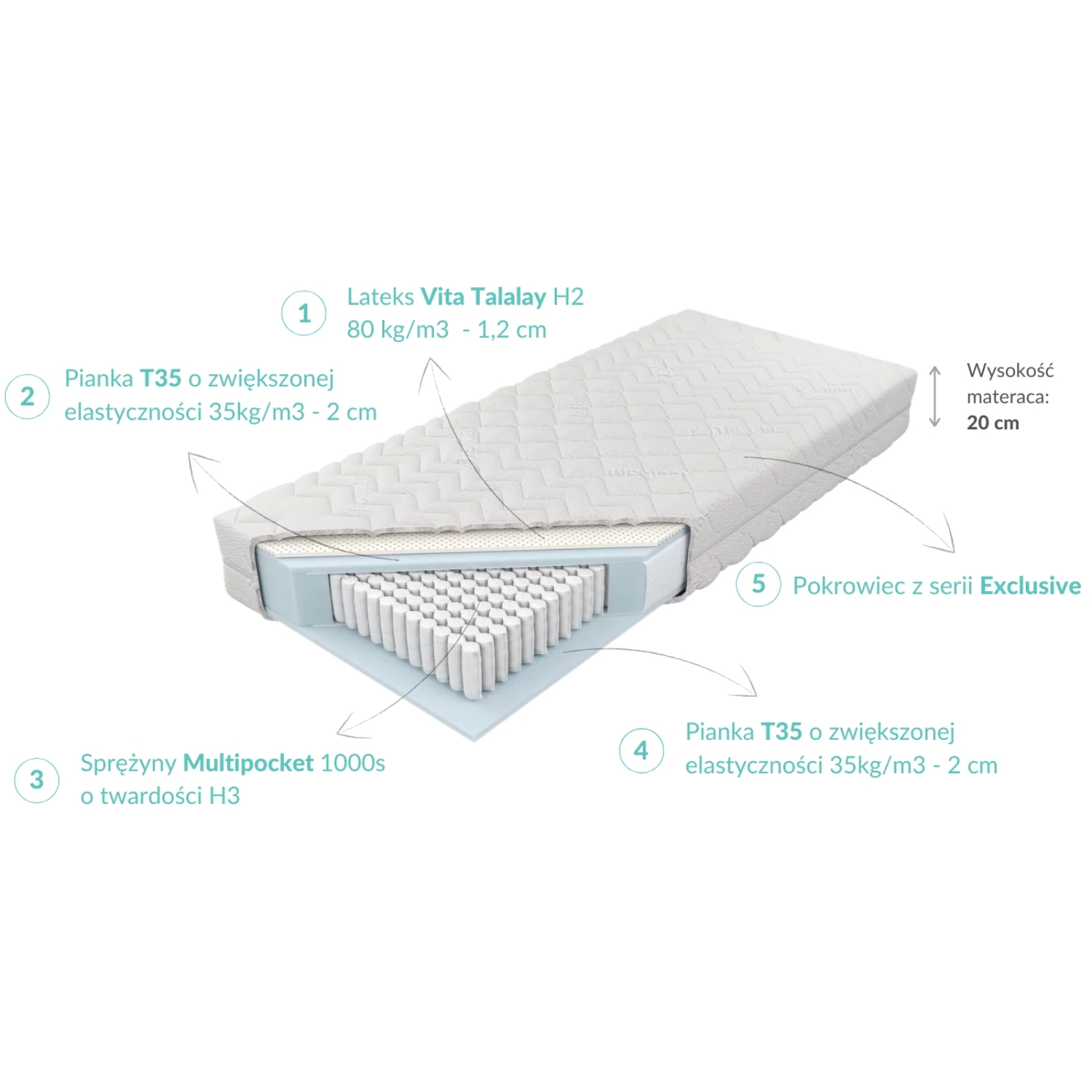 Lateks Talalay Natural, sprężyna kieszeniowa 7-polowa, pianka T35