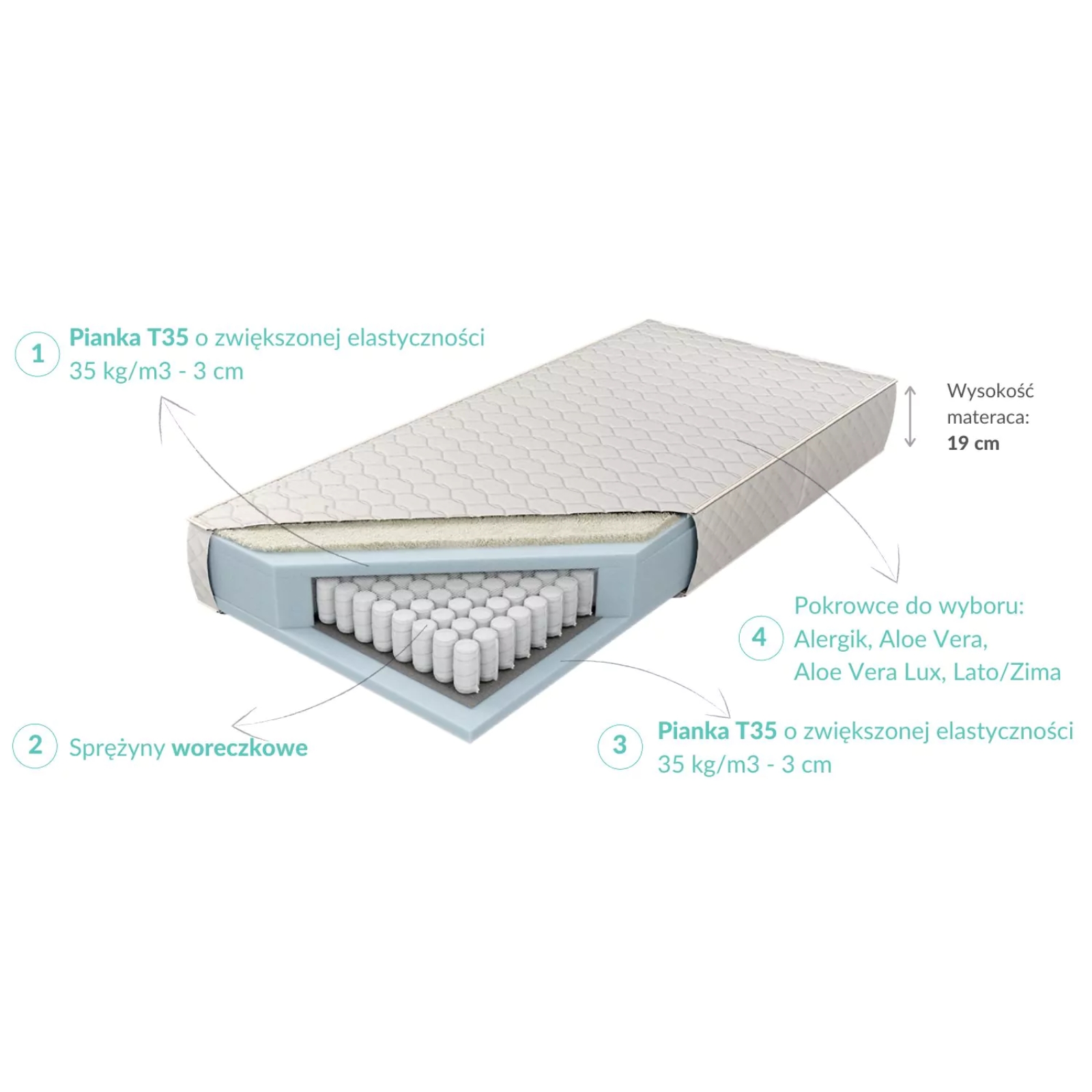 Materac Sueno Vital składa się z trzech warstw, które zapewniają komfort i długą żywotność: