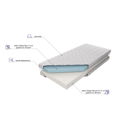 - 5cm warstwa lateksu – odpowiednio dopasowuje się do kształtu ciała, wspierając kręgosłup w najważniejszych punktach, takich jak biodra czy barki.