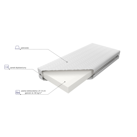 Pianka lateksoidalana LXI - Innowacyjne połączenie właściwości pianki oraz lateksu przyczyniło się do powstania pianki lateksoidalnej. Dzięki charakterystycznej porowatej strukturze jest niezwykle miękka i otulająca. Natychmiast dopasowuje się do kształtu sylwetki wspierając prawidłowo ciężar całego ciała. Ze względu na swoją dużą gęstość oraz otwarte komórki zapewniona zostaje dobra cyrkulacja powietrza gwarantując higienę oraz komfort snu niezależnie od temperatury otoczenia.