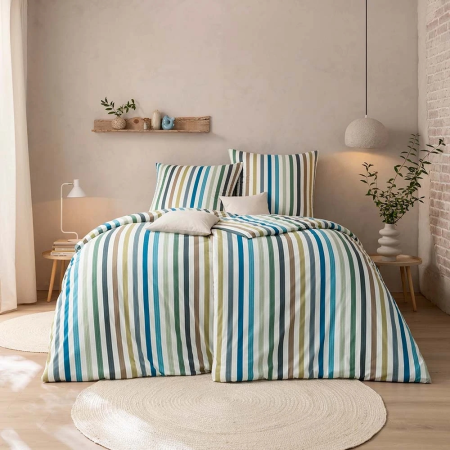Pościel Tavaro to nowoczesny styl w dwóch wyjątkowych odsłonach – świeża paleta zieleni, błękitu i beżu wnosi do wnętrza lekkość i energię, natomiast wariant w odcieniach szarości to ukłon w stronę klasycznej elegancji i harmonii. Wykonana z miękkiej, super-czesanej bawełny MAKO, zachwyca nie tylko przyjemnością dotyku, ale i wytrzymałością. Starannie dobrany splot dzianiny nadaje jej sprężystość i elastyczność, dzięki czemu idealnie dopasowuje się do temperatury pomieszczenia, nie tracąc formy nawet po wielu praniach. To tkanina, która codziennie pracuje na Twój komfort – bez kompromisów.