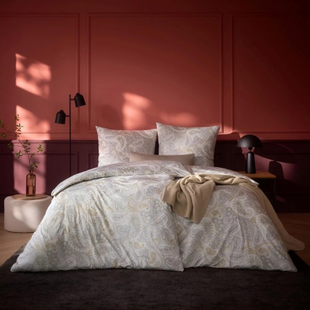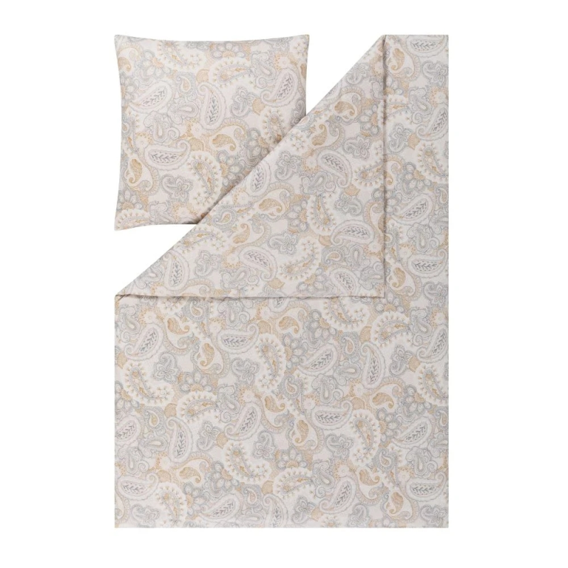 Pościel Ella to subtelność połączona z lususem. Elegancki ornamentalny wzór doskonale współgra z delikatnym jasnym tłem. Odcienie złotego i szarego dodają pościeli głębi, jednocześnie nie przytłaczając. Wykonana w 100% z superczesanej bawełny mako o gęstości Nm 100/1, Ella zadba również o Twój komfort snu. Wprowadzi do Twojej sypialni nutę elegancji i spokoju. Materiał nie wymaga prasowania i doskonale przepuszcza powietrze, co czyni pościel niezwykle łatwą w pielęgnacji. Jeśli zależy ci na eleganckim wnętrzu, bez jaskrawych kolorów, wybierz pościel Ella!