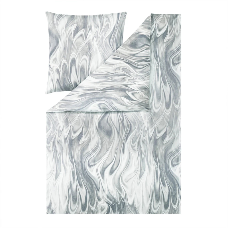 Pościel Klaas przywodzi na myśl fale białego ognia, biel i szarość przeplatają się na tej pościeli sprawiając, że każde spojrzenie na nią jest hipnotyzujące. Została wykonana w 100% z bawełny mako super-czesanej. Materiał nie wymaga prasowania, jest delikatny w dotyku i doskonale oddycha. Pościel nie tylko zapewni Ci komfort snu, ale będzie również idealnym dodatkiem do każdego wnętrza. Nie przytłacza kolorami, wzorem nadaje charakteru i oryginalności. Jeśli chcesz ożywić sypialnię bez intensywnych kolorów, ta pościel jest dla Ciebie!
