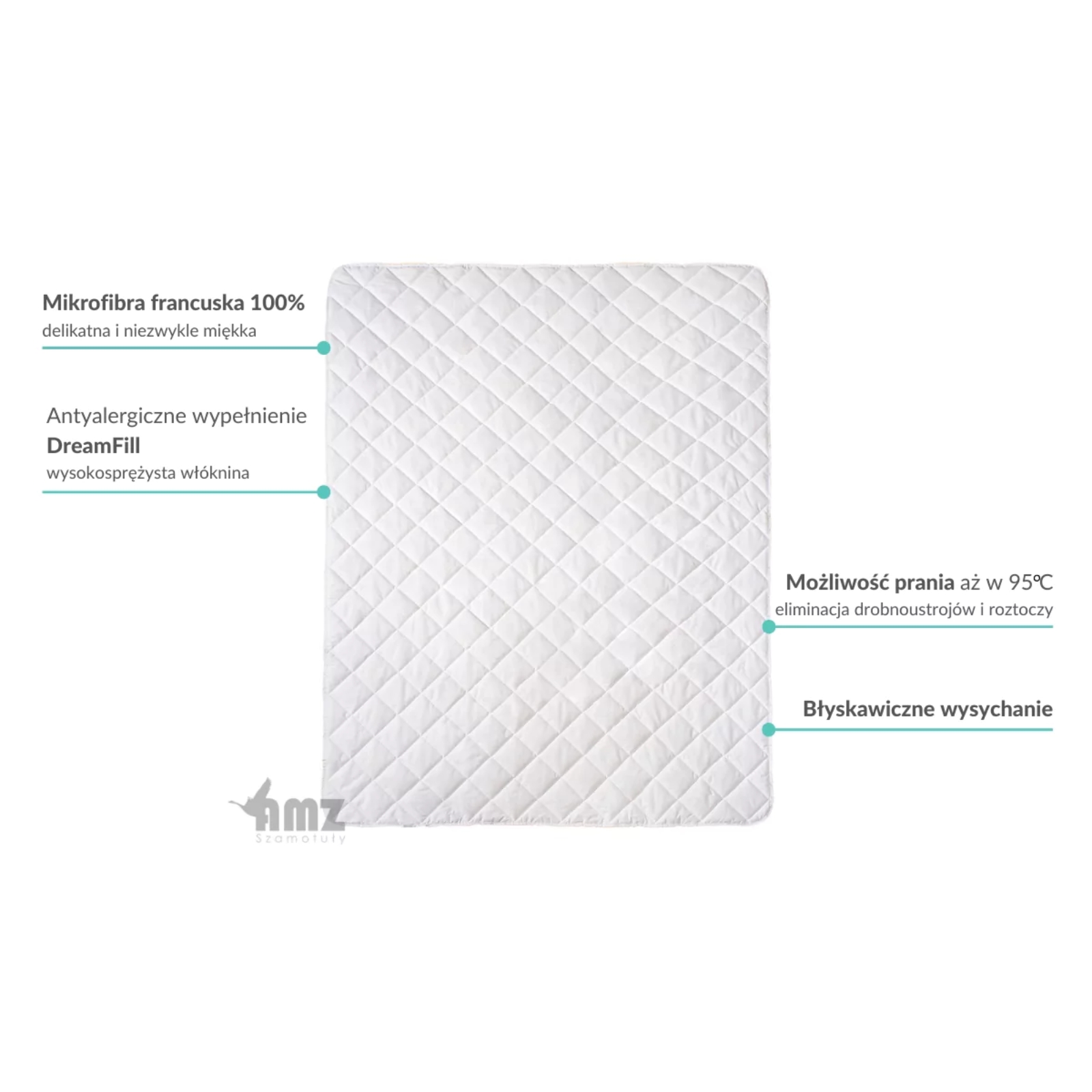 Mikrofibra nakładka ochronna została pokryta jedwabiście miękką i łatwą do utrzymania w czystości mikrofibrą. Można prać w temp. max do 95 stopni C.