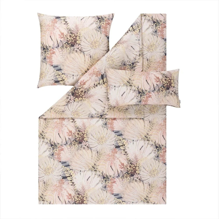 Pościel Amira to połączenie elegancji i spokoju. Delikatny wzór w pudrowych i kremowych tonach z nutą granatu tworzy harmonijną, nastrojową całość. Jedwabisty połysk mako-satyny sprawia, że tkanina subtelnie mieni się w świetle, wprowadzając do sypialni ciepło i przytulność. Bawełna mako to naturalny, oddychający materiał, który reguluje temperaturę ciała i zapewnia komfort przez cały rok. Jest miękka, gładka i trwała, zachowuje świeżość i kolor nawet po wielu praniach.