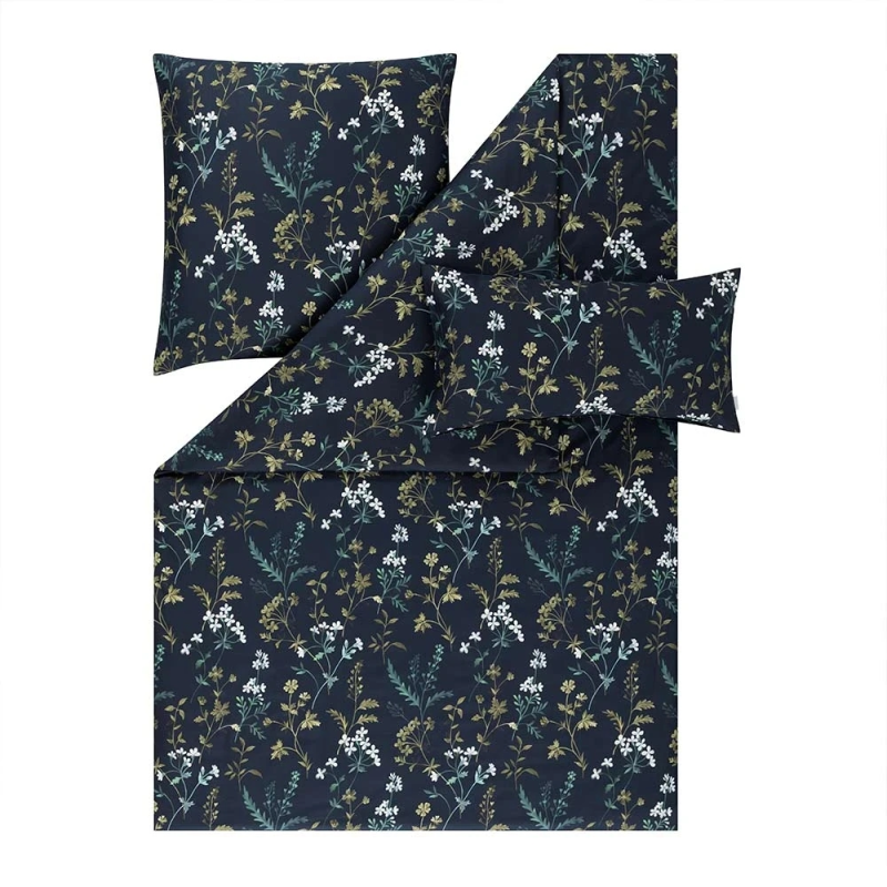 Pościel Tessa wprowadza do sypialni spokój i elegancję. Głęboki granat przypomina nocne niebo, a delikatne akwarelowe motywy w odcieniach zieleni i kremu dodają jej lekkości i naturalnego uroku. Całość tworzy harmonijną kompozycję, która uspokaja i sprzyja odpoczynkowi. Mako-satyna z superczesanej bawełny długowłóknistej jest jedwabista w dotyku. Tkanina jest trwała, odporna na mechacenie i zachowuje świeżość przez długi czas. Tessa łączy w sobie wygodę, wysoką jakość i ponadczasowy styl. Idealna dla tych, którzy szukają pościeli z nutą luksusu i natury.